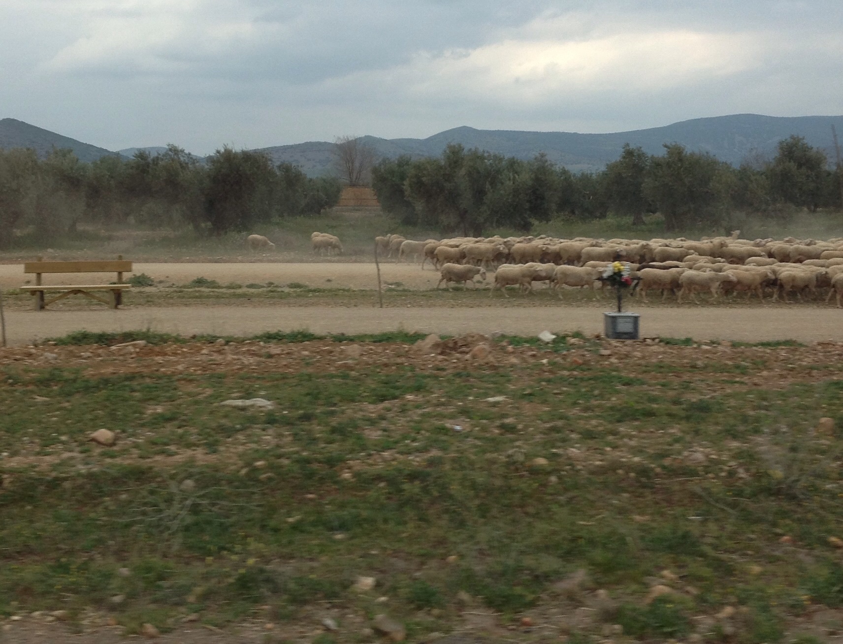 We drove for a few hours and stopped for lunch in a very small town. I had no idea what we were ordering when I simply pointed to two different phrases on the menu.These turned out to be pimentos and bread, and eggs with rice and sausage. Both were good Spanish fare, and the one-room restaurant was full when we left.