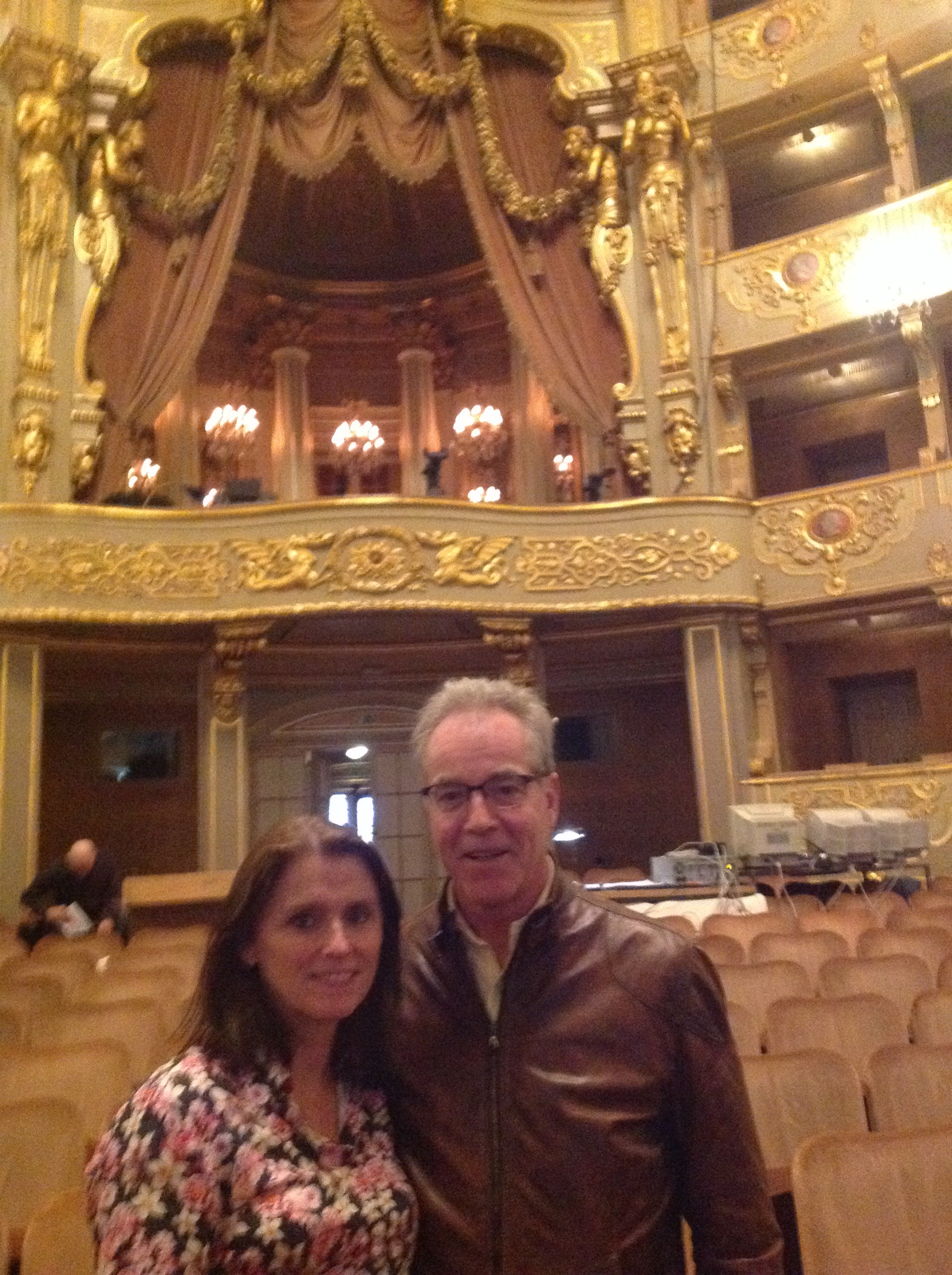 At the opera house. That’s the President’s box/viewing chamber behind us – it used to be for the king.