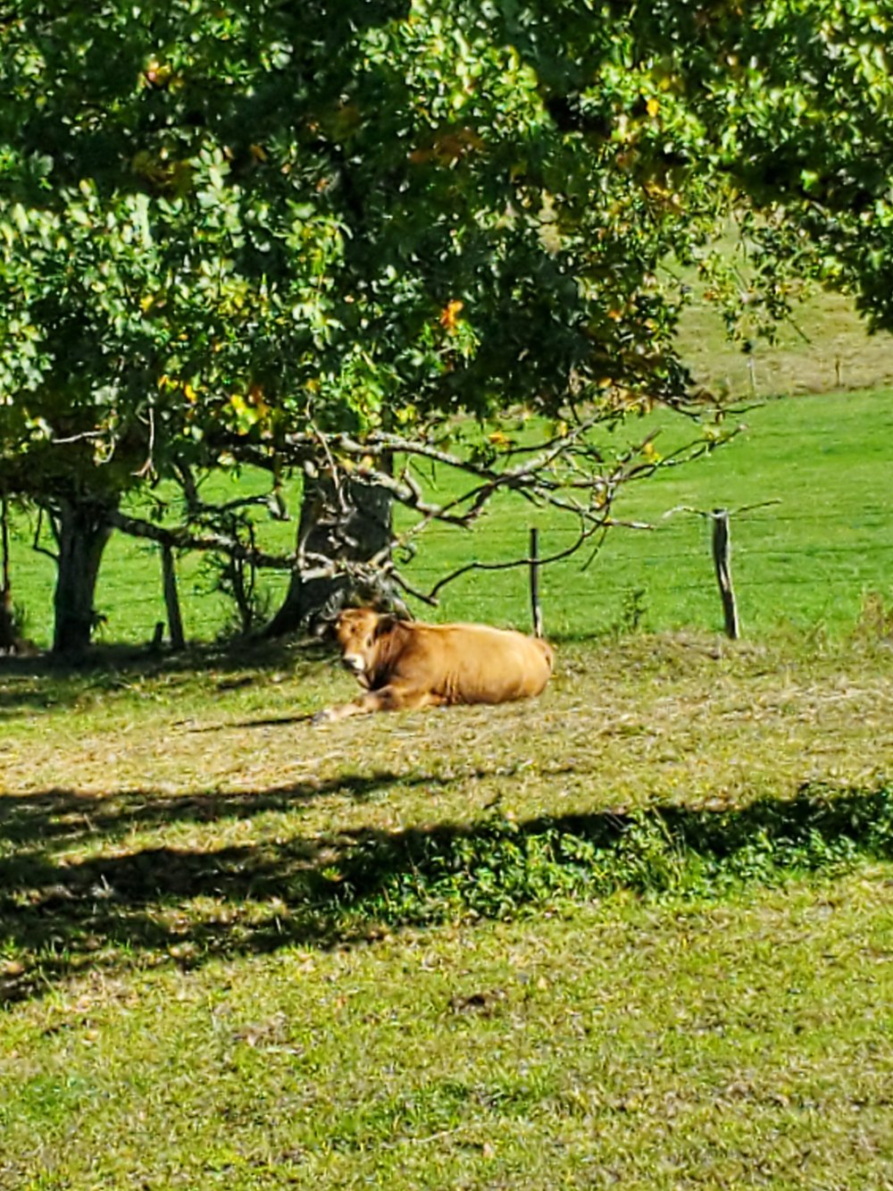 We stopped at about 12:30 for lunch at a place I discovered online: Chez Juju. It was the only restaurant around and we had to drive along narrow roads to get there.