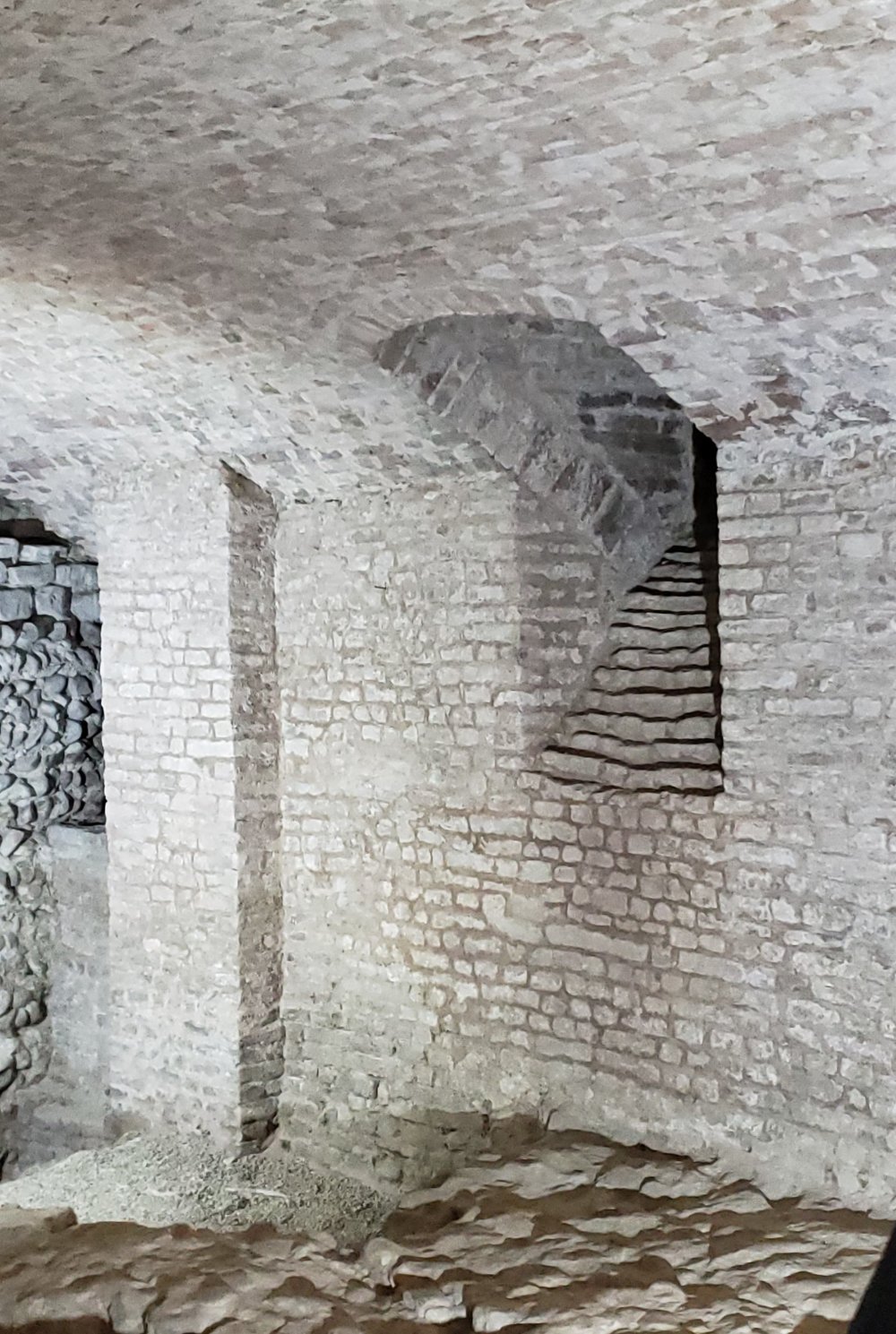 After coffee, we dropped our bags back at our apartment and headed toward our tour of underground Alba. By now – 10:30- the streets were full of people, children, strollers, and dogs, and it took some time to get around.