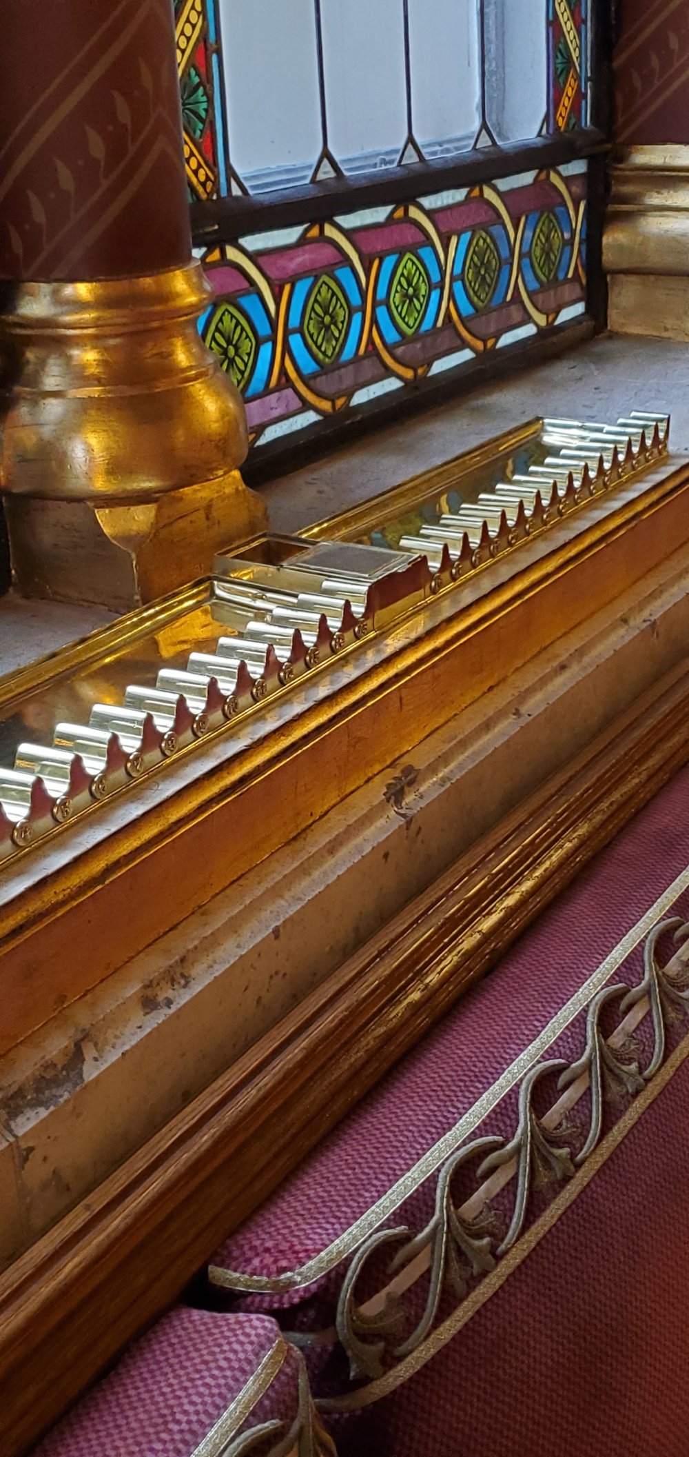 photos: Where members of Parliament put their cigars when they went into the courtroom. These numbered spots are still there because they are part of the wood; the New York Cafe – usually packed with people; the main entrance to the Parliament building, from inside