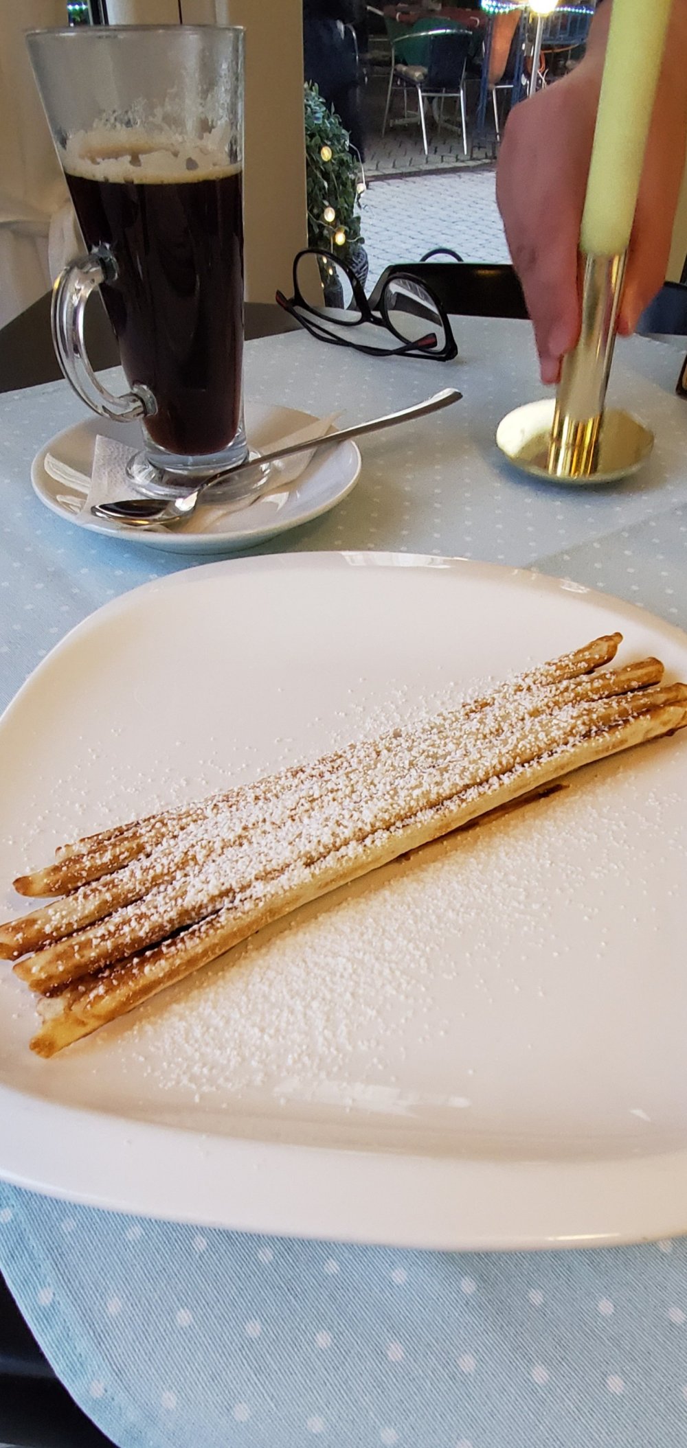 photos: a tree in the center of Eger’s town square; a stream that runs into the Eger River; palacsinta – a rolled pancake tgat can have nuts, jam, or other things in it. We had chocolate❤