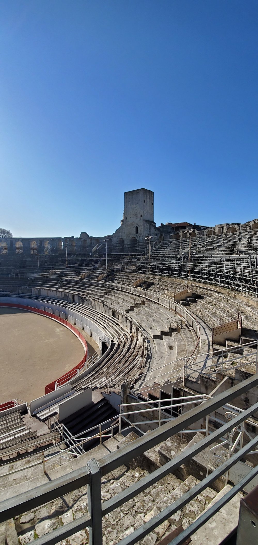 Next we went to the old Roman amphitheater – actually the ruins of the theater. It is still used for bullfights in April and May, and since it is still generally in its original condition, it was a wonder to see. There were some feral cats sleeping on the stone bleachers, one was walking around and as big as a fox. So I didn’t walk around the entire amphitheater.