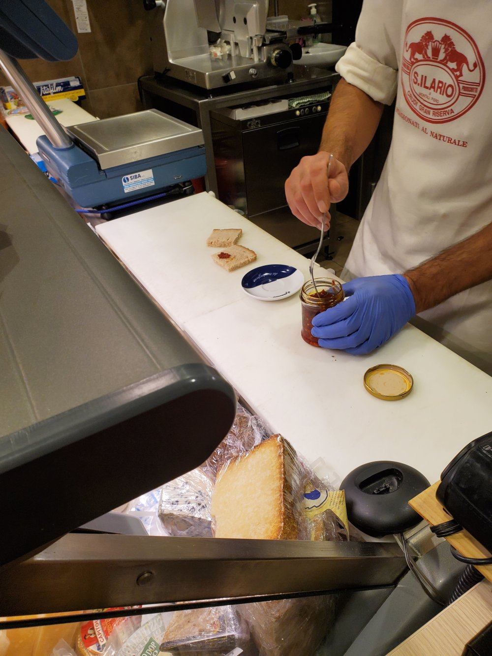We walked around this evening to check out what’s around and bought some local salami from a butcher nearby, who also got us to try some hot peppers in olive oil. We ended the evening with some gelato, which cannot become a habit despite the shop being next door to where we are staying.