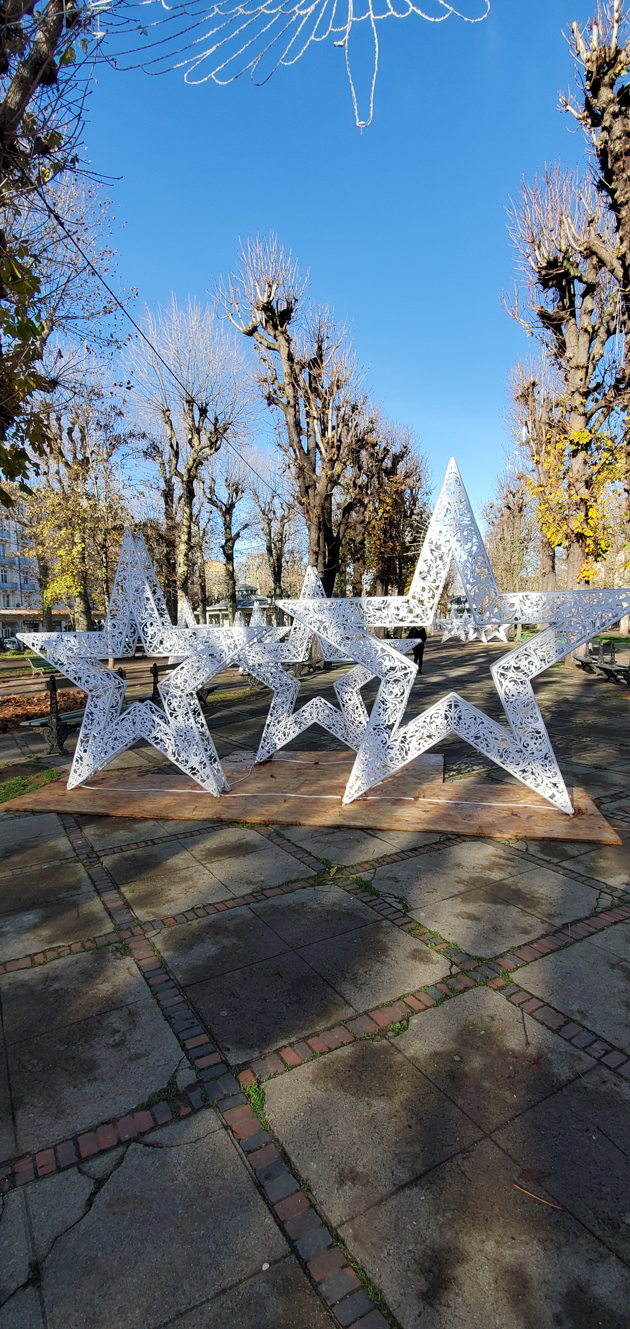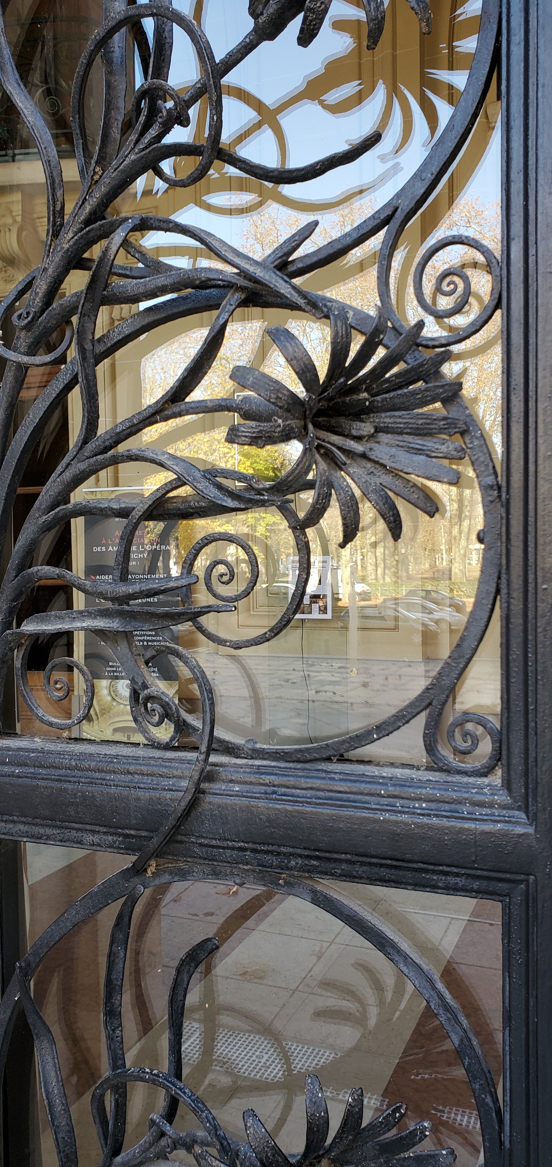 photos: on the doors of the opera house; the Hall des Sources; holiday stars in the park